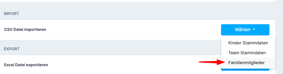 Oder exportiere unter „Excel Datei exportieren → Familienmitglieder“ eine bestehende Liste und bearbeite sie für den Import.