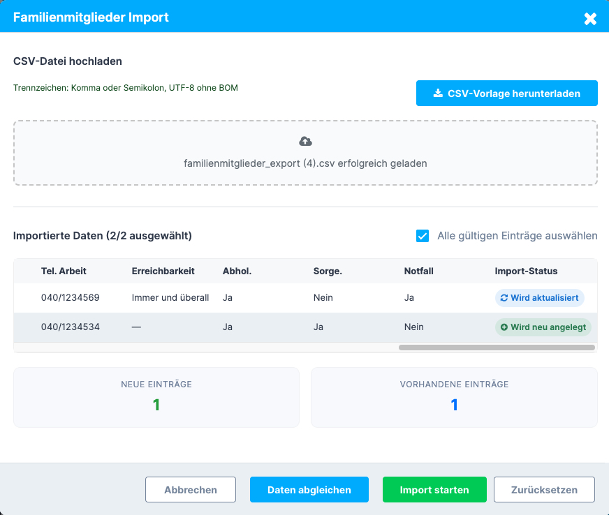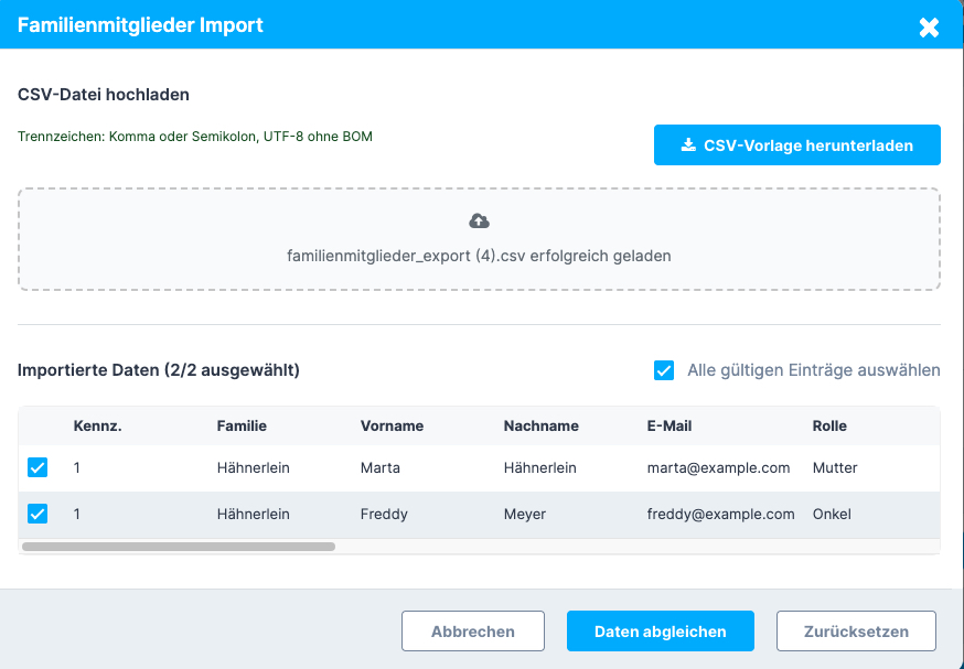 Mit dieser Funktion kannst du Familienmitglieder bequem per CSV-Datei importieren.