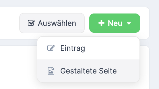 Tippe auf „Neu“ und wähle „Gestaltete Seite“. Es öffnet sich ein Vollbild-Editor: