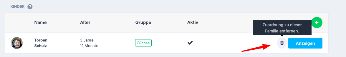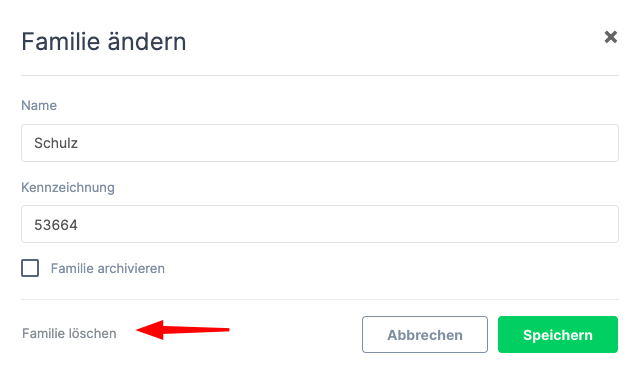 Eine Familie kann erst gelöscht werden, wenn ihr keine Kinder mehr zugeordnet sind.